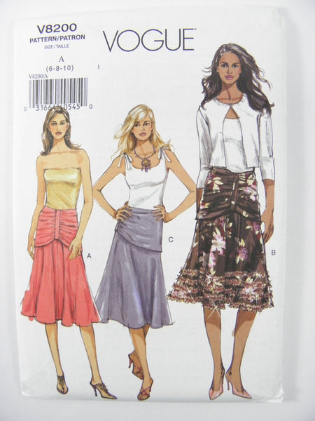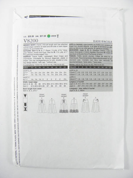 Flared mid calf length skirt has attached unlined drape variation at waist and left side or back zip closure. B purchased trim