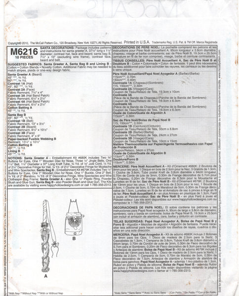 Package includes patterns and instructions for a Santa Greeter and Santa Christmas Card Bag.