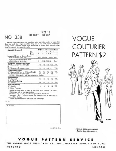This very rare, uncut vintage 1940s Vogue Couturier 338 vintage sewing pattern has been professionally reproduced and printed to exact scale on certified carbon neutral white paper, neatly folded and comes with full original instructions, outer colour cover sheets, and a zip lock sleeve for protection against dust and moisture.