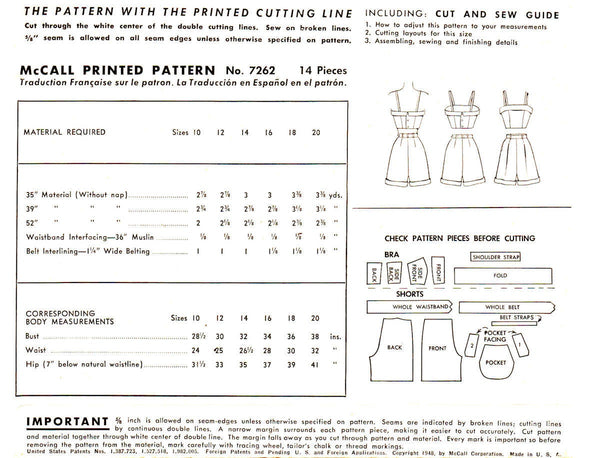 This uncut, vintage 1940s McCall 7262 sewing pattern has been professionally reproduced and printed to exact scale on certified carbon neutral white paper, neatly folded and comes with full original instructions, colour cover pictures, and a zip lock sleeve for protection against dust and moisture.