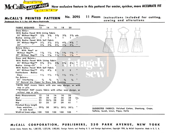 This uncut, vintage 1950s McCall's 3095 sewing pattern has been professionally reproduced and printed to exact scale on certified carbon neutral white paper, neatly folded and comes with full original instructions, colour cover pictures, and a zip lock sleeve for protection against dust and moisture.