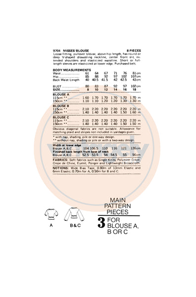 This vintage 1970s Vogue 9704 sewing pattern has been professionally reproduced and printed to exact scale on certified carbon neutral white paper, neatly folded and comes with full original instructions, colour cover pictures, and a zip lock sleeve for protection against dust and moisture.