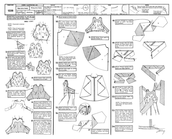 This vintage halter evening dress sewing pattern has been professionally reproduced and printed to exact scale on certified carbon neutral white paper, neatly folded and comes with full original instructions, colour cover sheets and a zip lock sleeve for protection against dust and moisture.