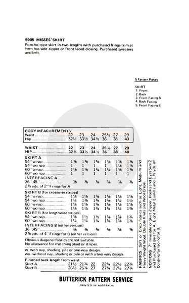 This vintage 1970s Butterick 5905 sewing pattern has been professionally reproduced and printed to exact scale on certified carbon neutral white paper, neatly folded and comes with full original instructions, colour cover pictures, and a zip lock sleeve for protection against dust and moisture.