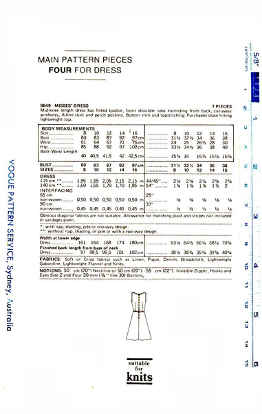 Vogue 8849 sewing pattern has been professionally reproduced and printed to exact scale on certified carbon neutral white paper, neatly folded and comes with full original instructions, colour cover pictures, and a zip lock sleeve for protection against dust and moisture.