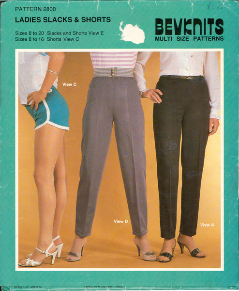 Bevknits 2800, Sewing Pattern, Ladies' Slacks & Shorts, Uncut