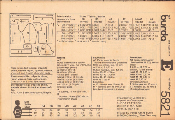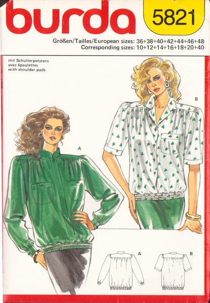 Burda 5821 Sewing Pattern, Blouses, Size 10-20, Uncut Factory Folded