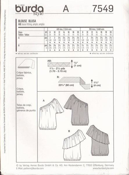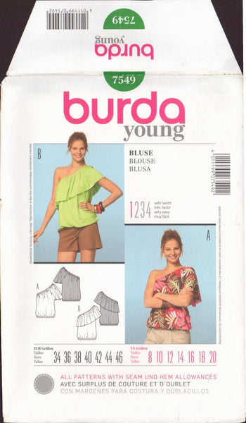 Burda 7549 Sewing Pattern, Blouse, Size 8-20, Uncut, Factory Folded
