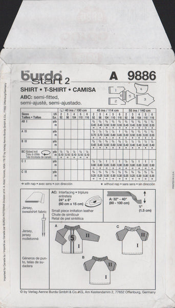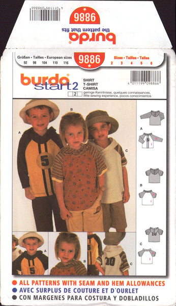 Burda 9886 Sewing Pattern Children's T-Shirt Size 2-6 Uncut Factory Folded