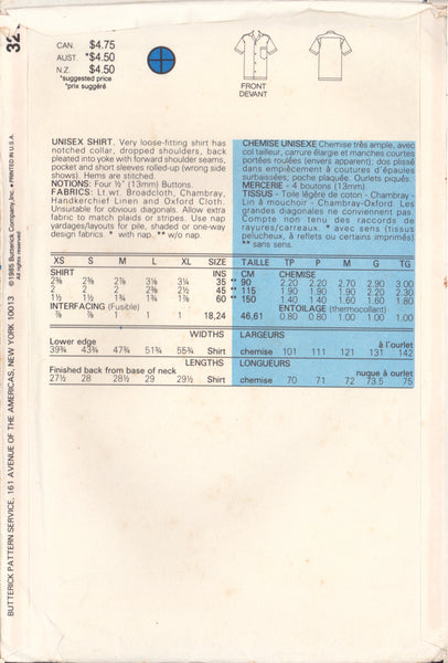 Butterick 3210 Sewing Pattern Shirt Size L-XL Uncut Factory Folded