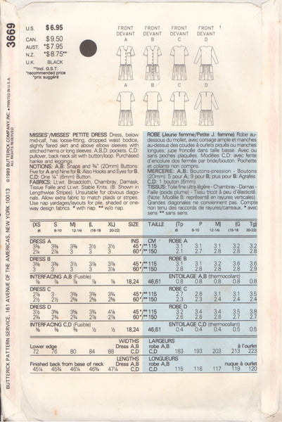 Butterick 3669 Sewing Pattern Dress, Size XS-S-M, Uncut, Factory Folded