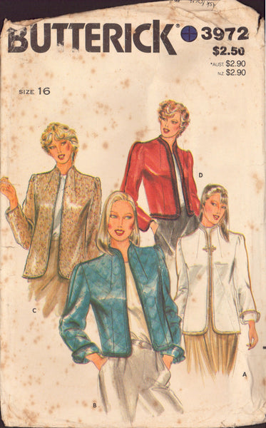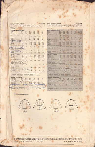 Loose-fitting lined jackets in two lengths have high shaped neckline with front neckline darts, shaped hemline, full length two-piece sleeves and optional purchased trim. Sleeves can be worn turned up. Topstitching.