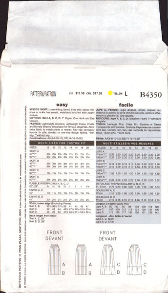 Loose-fitting, flared, lined skirt, below mid-knee or ankle has pleats, waistband and left side zipper closure.