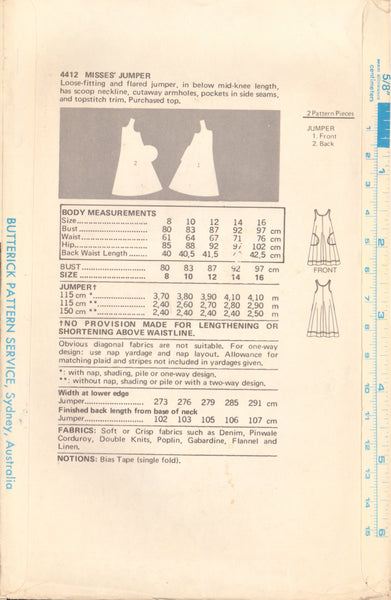 Butterick 4412 Sewing Pattern, Women's Jumper, Size 12, Cut, Complete