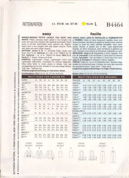 Princess Seam Jacket, Lined Sleeveless Top, Flared Skirt in Two Lengths and Pants
