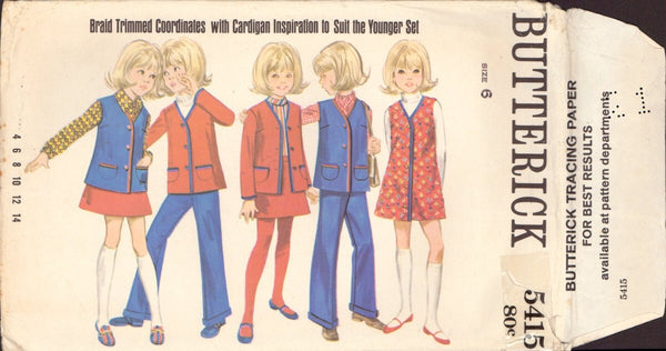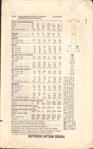 Butterick 5415 Sewing Pattern, Children's and Girls' Jacket, Jumper, Skirt and Pants, Size 6, Neatly Cut, Complete