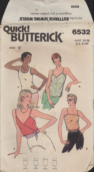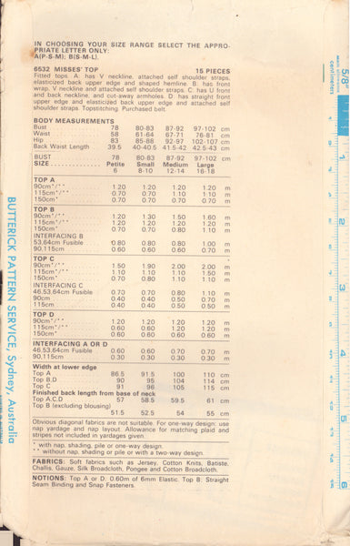 Butterick 6532 Sewing Pattern, Top, Size S-M, Neatly Cut, CompleteThe pattern has been cut to size M.