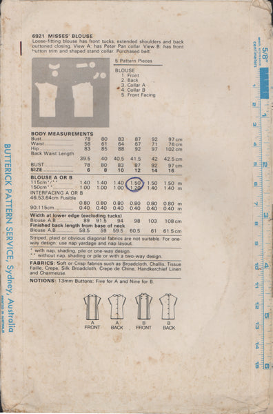 Butterick 6921 Sewing Pattern, Blouse, Size 16, Cut, Complete
