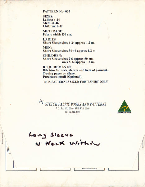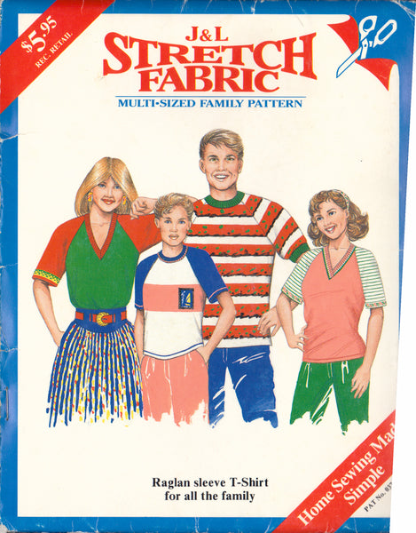 J&L 037 Sewing Pattern, Raglan Sleeve T-Shirt For All The Family, Multi-Size, Uncut, Factory Folded