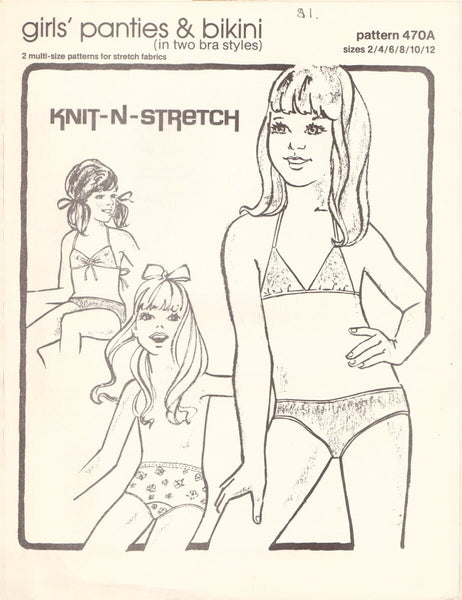 Knit-n-Stretch 470A Sewing Pattern, Girls' Panties & Bikini, Size 2-4-6-8-10-12, Uncut, Factory Folded