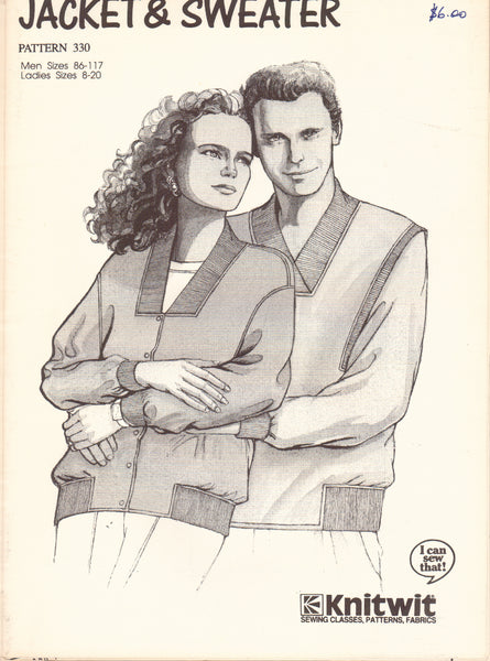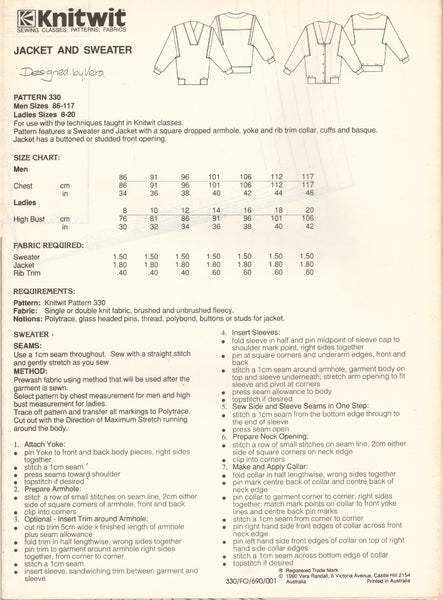 Knitwit 330 Sewing Pattern Jacket & Sweater, Size 86-117men/8-20women, Uncut, FF