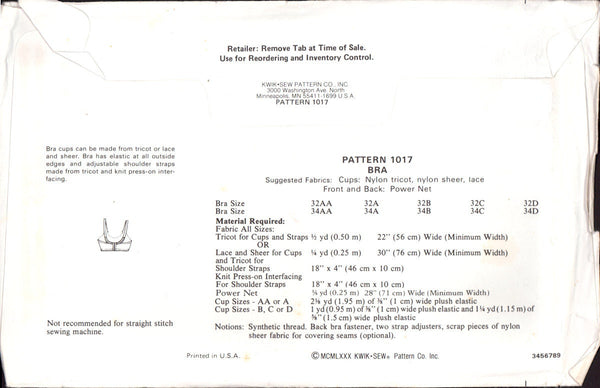 Bra cups can be made from tricot or lace and sheer. Bra has elastic at all outside edges and adjustable shoulder straps made from tricot and knit press-on interfacing.