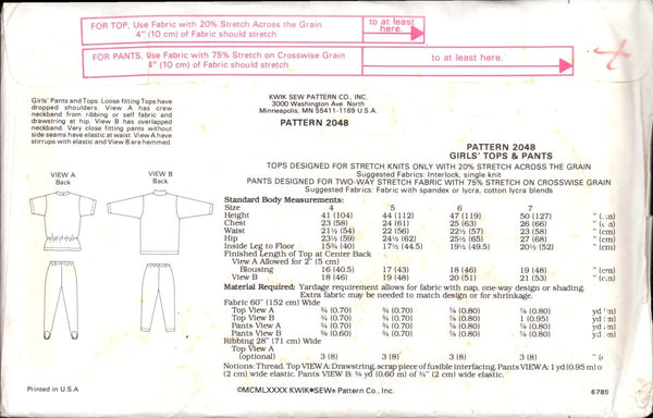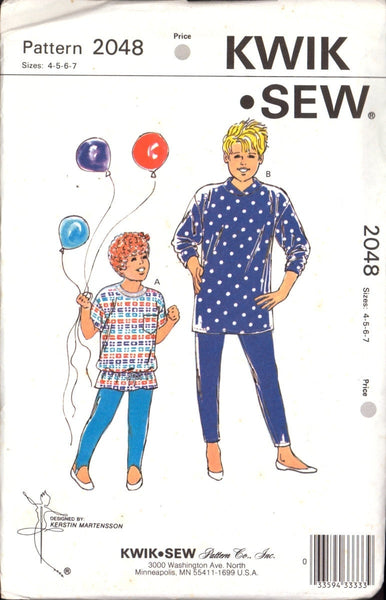 Kwik Sew 2048 Girls' Pants, Tops, Uncut, Factory Folded, Sewing Pattern, Size 4-5-6-7
