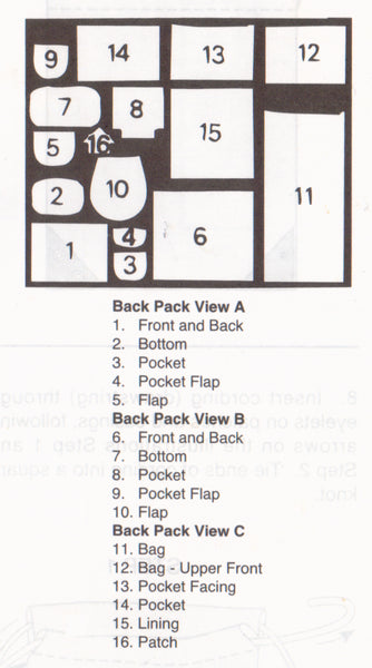 Backpack A is cut and piece 3 (pocket) is missing. See the picture. The rest is uncut.