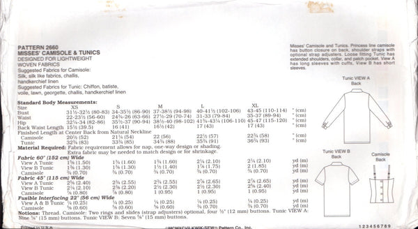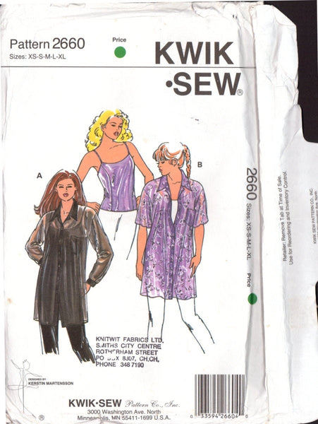 Kwik Sew 2660 Sewing Pattern Camisole Tunics Size XS-S-M-L-XL Uncut Factory Folded