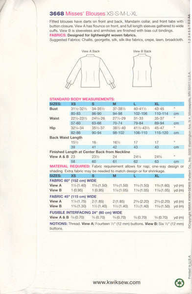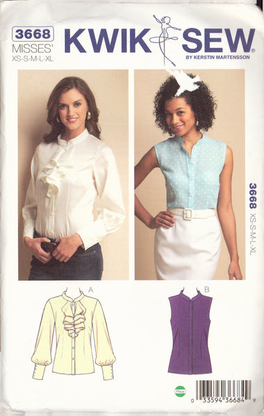 Kwik Sew 3668 Sewing Pattern, Misses' Blouses, Size XS-S-M-L-XL, Uncut, Factory Folded
