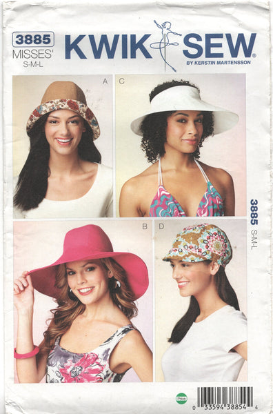 Patterns to create a bell shaped hat, wide brimmed hat, open crown hat and a lined cap.