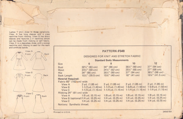 Kwik Sew 549 Sewing Pattern, Dress, Size 6-12, Uncut, Factory Folded
