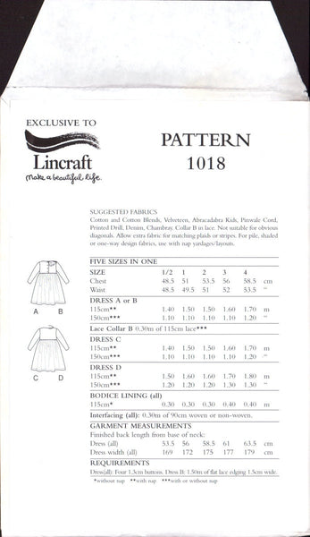 Lincraft 1018 Sewing Pattern Girl's Dress Size 0.5-4 Uncut Factory Folded