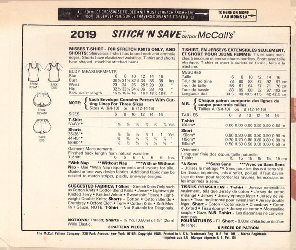 McCall's 2019 Sewing Pattern, Women's T-Shirt, Size 6-8-10, Uncut, Factory Folded