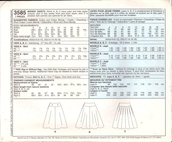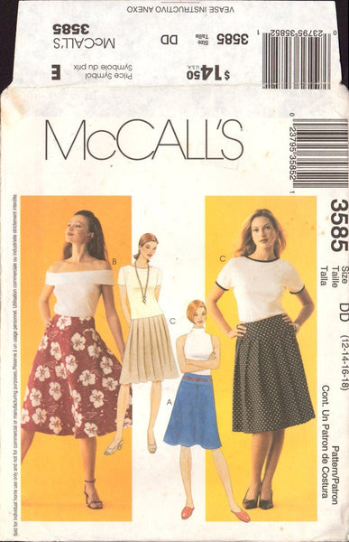 McCall's 3585 Sewing Pattern Skirt Size 12-14-16-18 Uncut Factory Folded