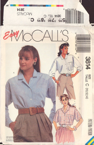McCall's 3814 Sewing Pattern, Women's Shirts, Size 10-12-14, Uncut, Factory Folded