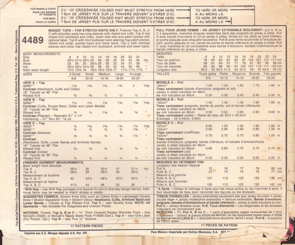 McCall's 4489 Sewing Pattern, Women's Tops, Size 10-12, Uncut Factory Folded