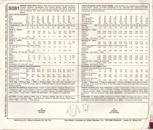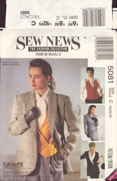 McCall's 5081 Sewing Pattern, Lined Vest, Size 10-12-14, Cut, Complete