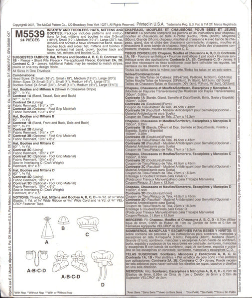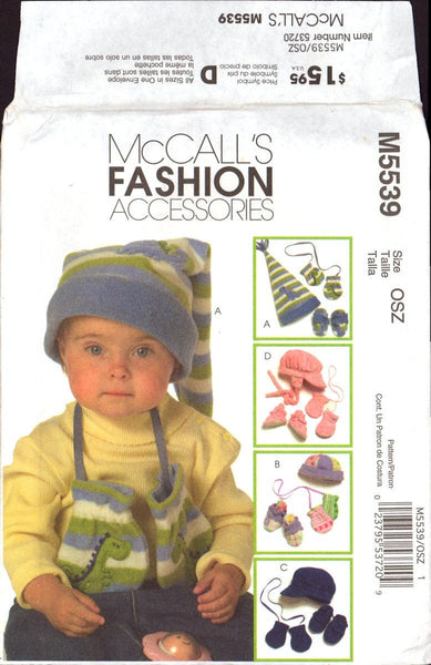 McCall's 5539 Sewing Pattern Infants' And Toddler's Hats Mittens and Booties All Sizes Uncut Factory Folded