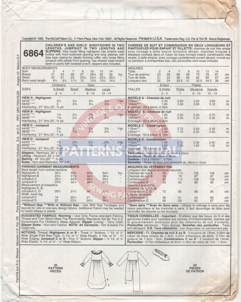 Very loose fitting nightgown has empire waist bodice with front buttoned opening and long sleeves with bias tape casing for elastic forming ruffle; very loose fitting jumpsuit with partial front opening, has empire waist bodice sewn to pant with lowered crotch; slippers also include