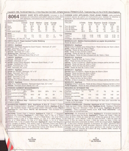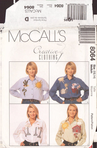 McCall's 8064 Sewing Pattern, Women's Shirts With Appliques, Size 12-14, Uncut, Factory Folded