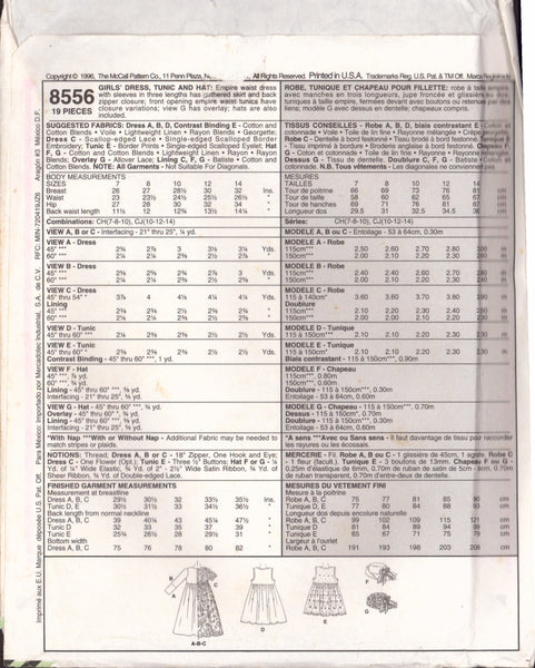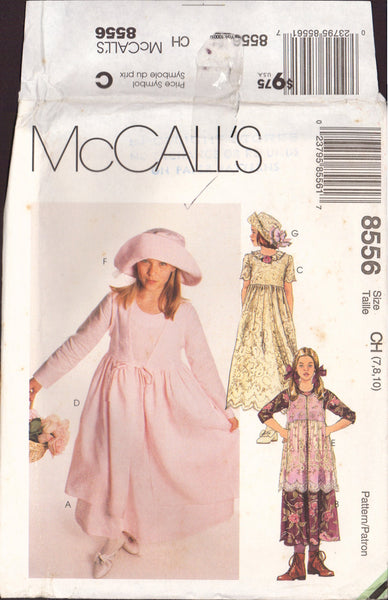 Empire waist dress with sleeves and three lengths has gathered skirt and back zipper closure. Front opening empire waist tunics have closure variations; View G has overlay;