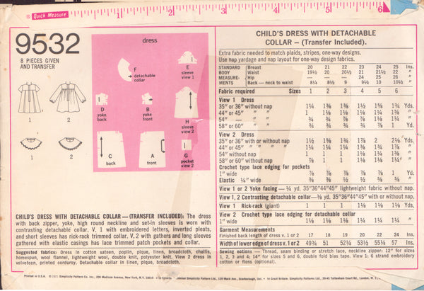 Simplicity 9523 Girl's Dress, Sewing Pattern, Size 6, Cut, Complete