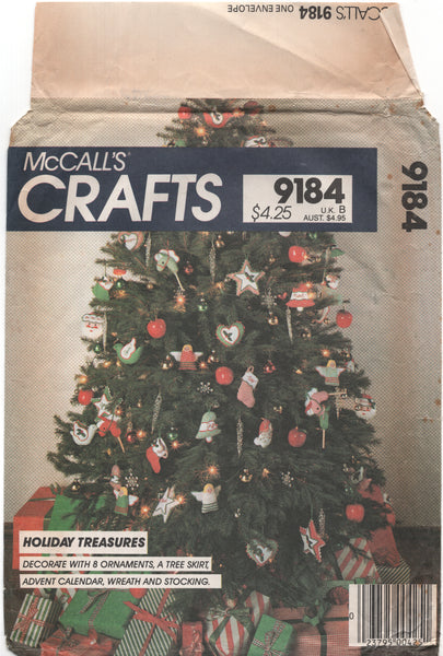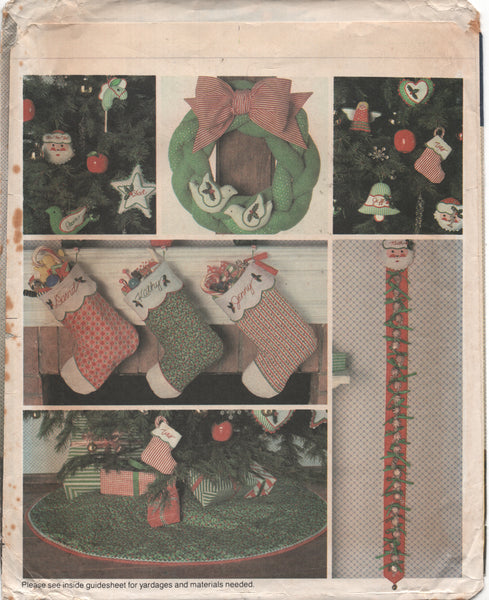 Pattern and instructions to make Christmas tree ornaments, wreath, tree skirt and stockings. Pattern is uncut and factory folded. Envelope in excellent condition with some light creases.