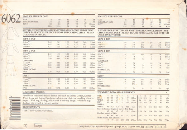 New Look 6062 Sewing Pattern, Top and Skirt, Size 8-12, Cut, Complete