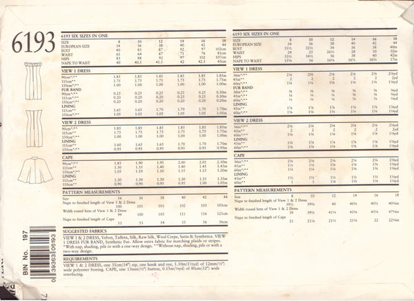 New Look 6193 Sewing Pattern, Dress and Cape, Size 8-18, Cut, Complete