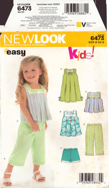 New Look 6473 Sewing Pattern, Toddler's Dress or Top, Size 1/2-4, Uncut, Factory Folded