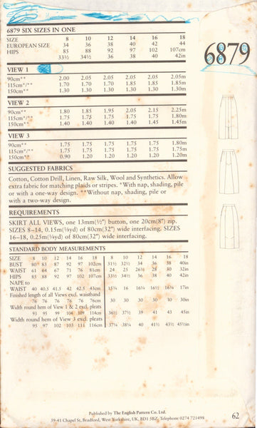 New Look 6879 Sewing Pattern, Skirts, Size 8-12, Cut, Complete