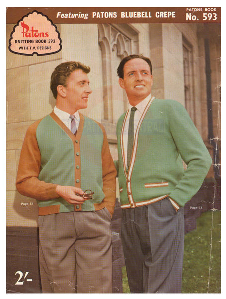 Patons 593 - 50s Knitting Patterns for Men's Sweaters and Cardigans Instant Download PDF 20 pages