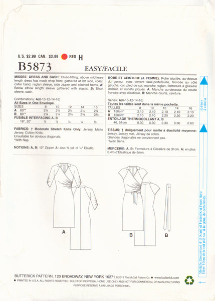 See&Sew 5873 Sewing Pattern, Misses' Dress and Sash, Size 8-16, Uncut, Factory Folded